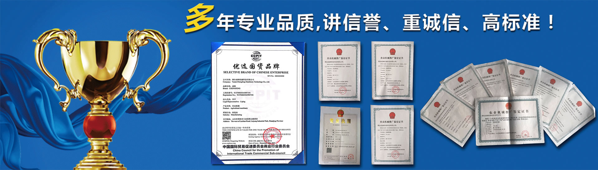 點(diǎn)擊進(jìn)入>煙臺(tái)成峰機(jī)械科技有限公司,成立于2010年4月,是農(nóng)林機(jī)械專業(yè)生產(chǎn)廠 家。十余年專注果園管理機(jī)械、大棚機(jī)械的研發(fā)、生產(chǎn)與銷售。產(chǎn)品暢 銷全國(guó)三十一個(gè)省市、自治區(qū),60%的產(chǎn)品出口歐、美、日、韓等多個(gè)國(guó)家。高新技術(shù)企業(yè),有經(jīng)驗(yàn)豐富的產(chǎn)品研發(fā)團(tuán)隊(duì),有十款產(chǎn)品通過(guò)國(guó)家農(nóng)機(jī)推廣鑒定,享有國(guó)家農(nóng)機(jī)補(bǔ)貼。公司現(xiàn)有激光切割機(jī)械、機(jī)器人焊 接、數(shù)控加工設(shè)備、表面處理設(shè)備數(shù)十臺(tái),具備萬(wàn)臺(tái)以上農(nóng)林機(jī)械的生 產(chǎn)能力。目前我們與山東農(nóng)業(yè)大學(xué),山東科技大學(xué)等多所高校達(dá)成產(chǎn)學(xué)研合作, 與山東農(nóng)機(jī)研究院、農(nóng)科院等多家科研單位達(dá)成產(chǎn)品研發(fā)合作,為傳統(tǒng)農(nóng)機(jī)的智能化賦能插上翅膀。我們遵循誠(chéng)信、創(chuàng)新、合作、共贏的經(jīng)營(yíng)理念,在可持續(xù)發(fā)展的道路上 穩(wěn)步前行。 查看詳情>
